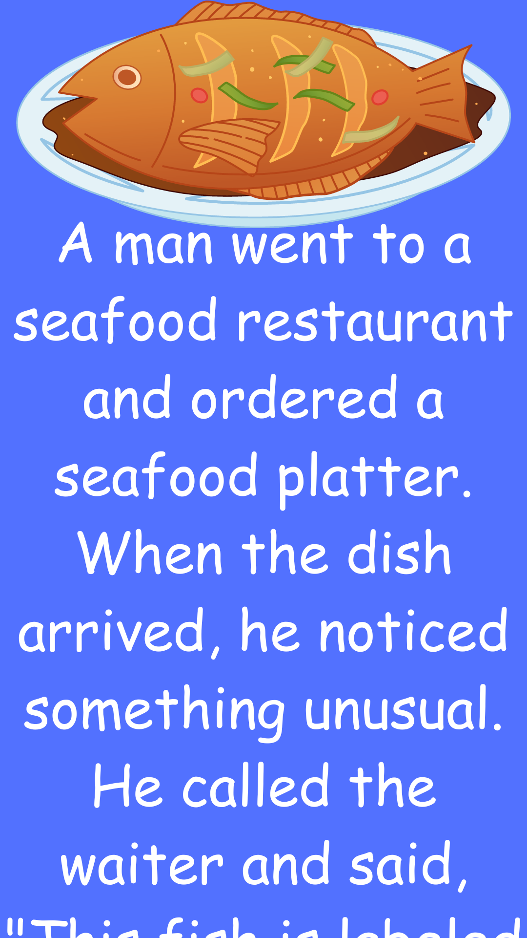 A man went to a seafood restaurant and ordered a seafood platter. When the dish arrived, he noticed something unusual. He called the waiter and...